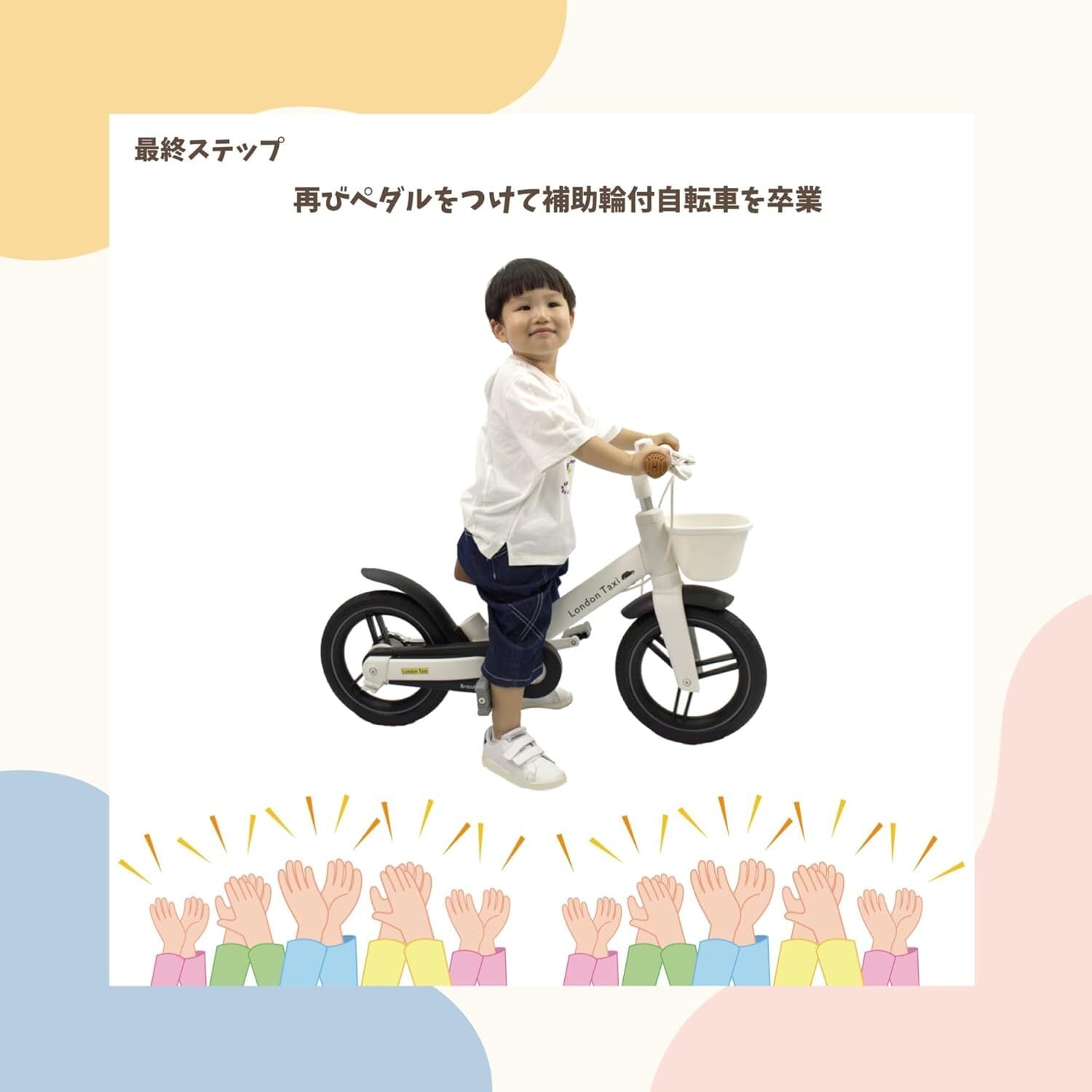 押し手棒付きで、パパ・ママがそっとサポート。まだ自分でこげなくても、一緒に景色を楽しむことからスタートできます。 ペダルや補助輪は取り外しできるから、三輪→キックバイク→自転車へのステップアップもこの一台で完結。 シンプルで品のあるカラーと、ロンドンタクシーらしい都会的なルックスは、どんな街並みにもなじみます。 小さな「やってみたい」を、やさしく、かっこよく応援するキッズバイクです。