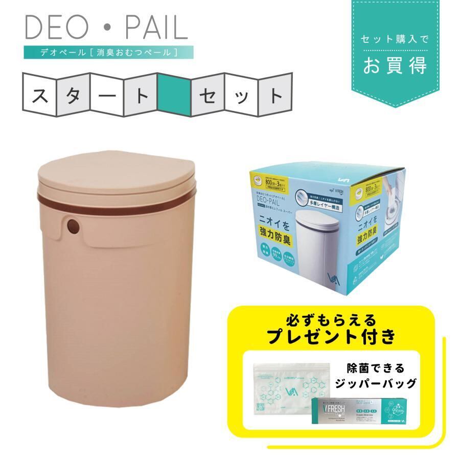 セット買い スタートセット 特典付き おむつ処理用ポット DEO・PAIL デオペール ミニ ライトピンク 多層強力防臭カセット3個パック ゴミ箱