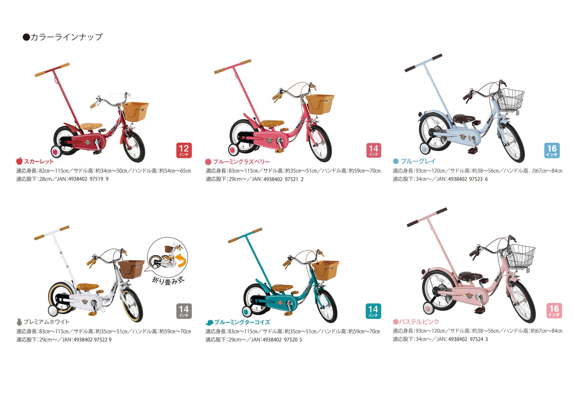 ※ペダル、前カゴ、補助輪、押して棒の取付が必要です。お客様自身での取付をお願いします。