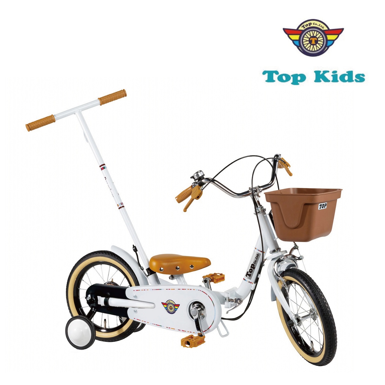 TOP いきなり自転車 14インチ プレミアムホワイト 子供用自転車 かじ取り 手押し棒