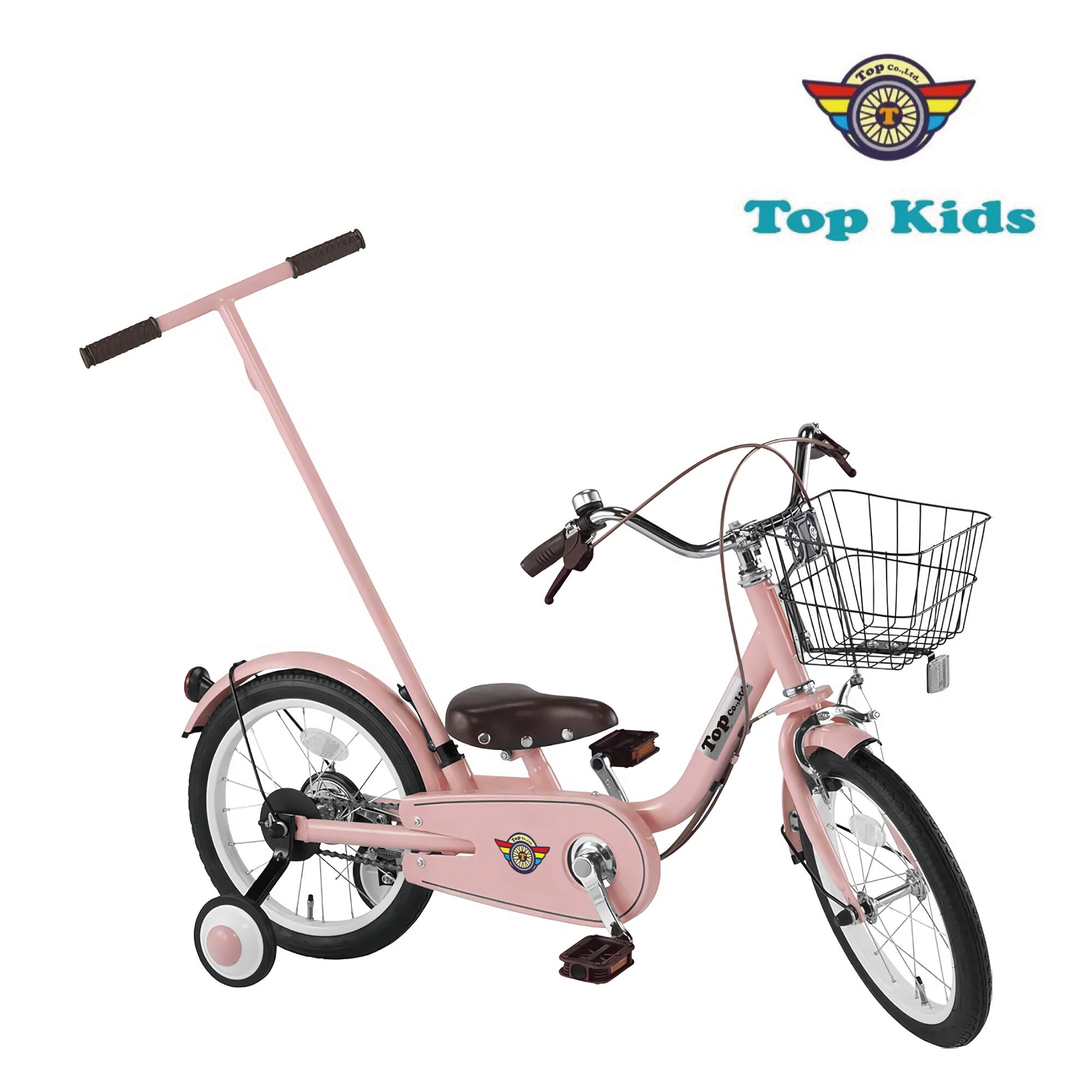 TOP いきなり自転車 16インチ パステルピンク 子供用自転車 かじ取り 手押し棒 プレゼント