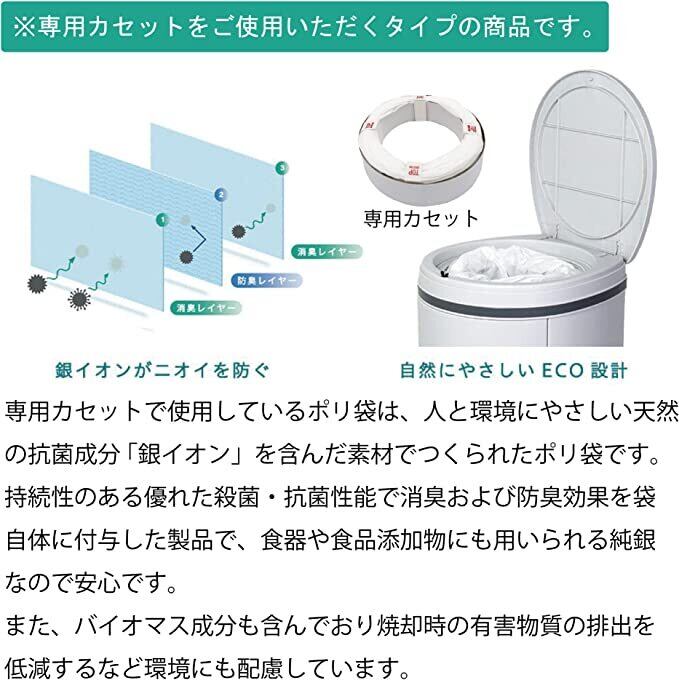 銀イオン除菌・抗菌素材である「VFRESH」を使用した3層の消臭・防臭レイヤーのゴミ袋が気になるニオイを強力消臭。さらにリムーブシャッター付きの本体でニオイを漏らしません。